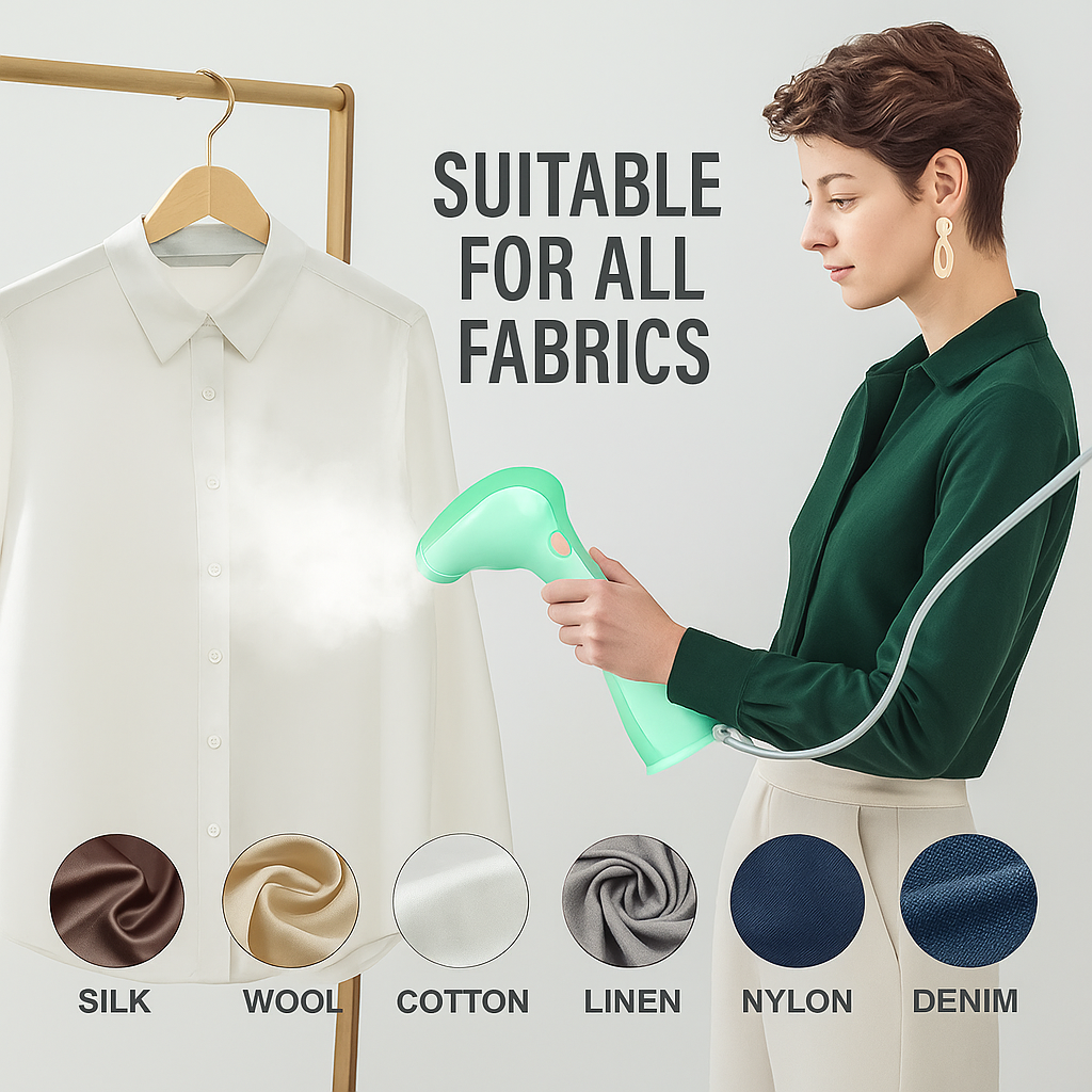 Ditch the bulky iron. Our steamer with vacuum suction removes wrinkles in seconds — no ironing board needed. Compact, fast, and safe for all fabrics.